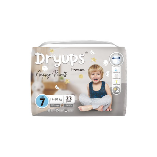 View full detailsDryups Premium Nappy Pants Unisex Size 7 3X-Large (17-30kg) 4-7 Years