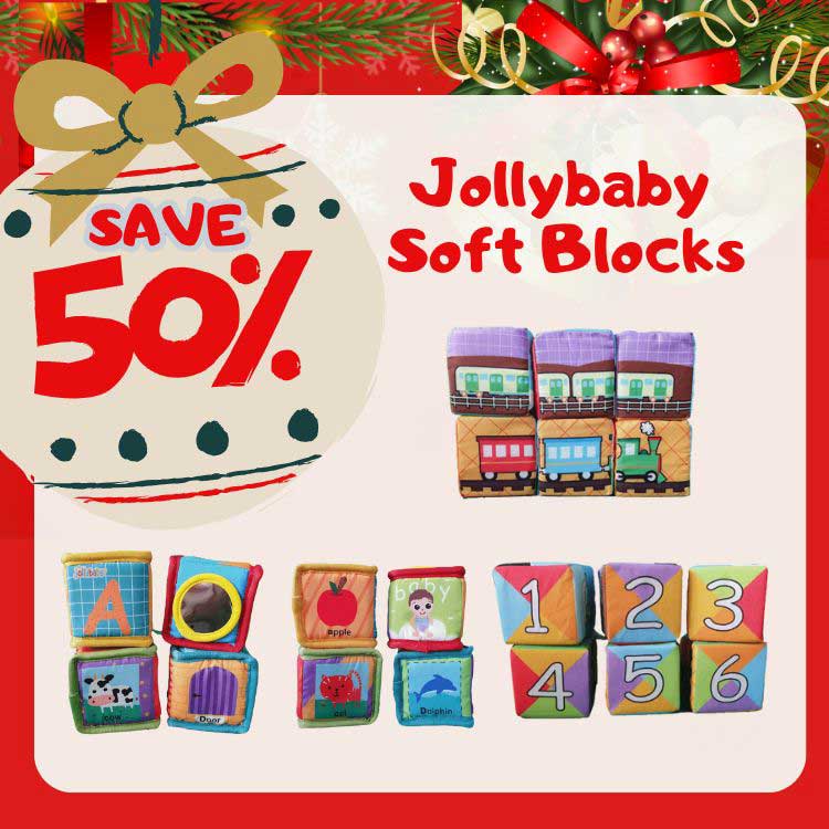 JollybabyThis pack of six soft blocks is designed to stimulate your babies' senses and help them learn through play. * Sensation - different colors, pattern...