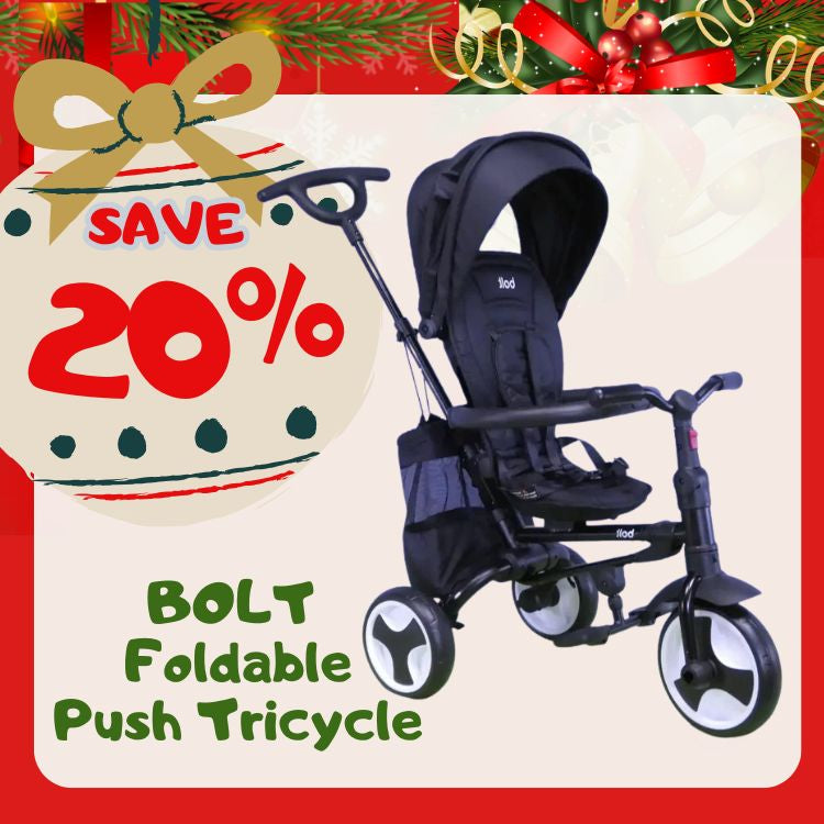 Ā Our BOLT Foldable Push Tricycle is aĀ Smart FoldingĀ Trike that grows with your child! Transforming from a stroller to a toddler tricycle helps your...