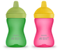 The Avent My Grippy spout cup has a unique valve and is leak-free. It has an anti-slip texture and contoured shape for little hands, helping toddlers confidently develop independent drinking skills.