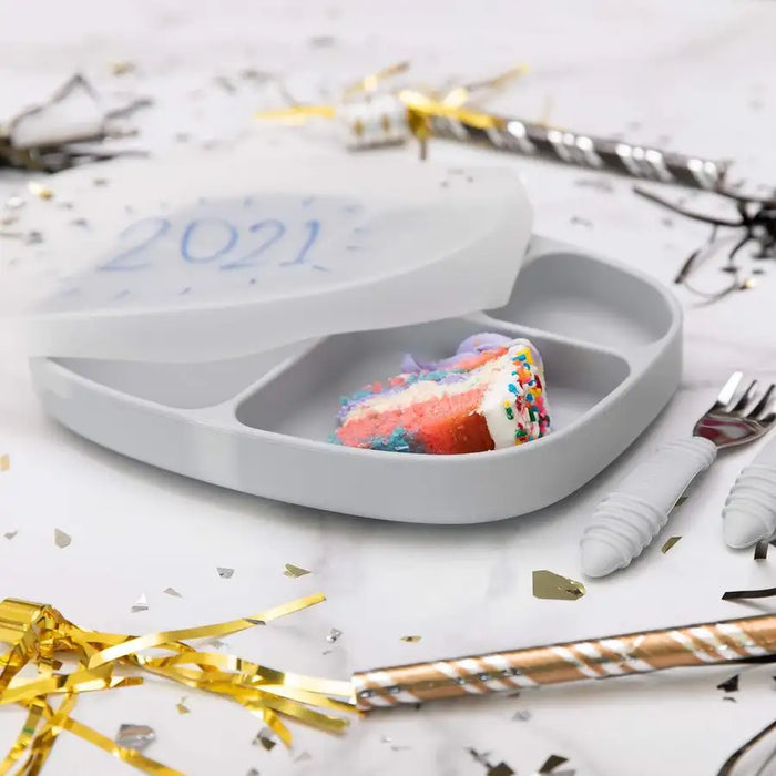 It gets better... it also comes with a leak-resistant lid, great for storing leftovers or prepping meals! You are able to write on the lid, labeling leftovers using a washable, dry-erase or wet-erase marker. Made from 100% food-safe silicone, the dish is just as durable and versatile as the original version, just with added sections for more food fun. Perfectly sized for toddler portions—there are two large sections that hold approximately 1 cup each, two smaller sections hold approximately 1/3 cup each, and one 1/2 cup section; all with deep walls to help contain food.