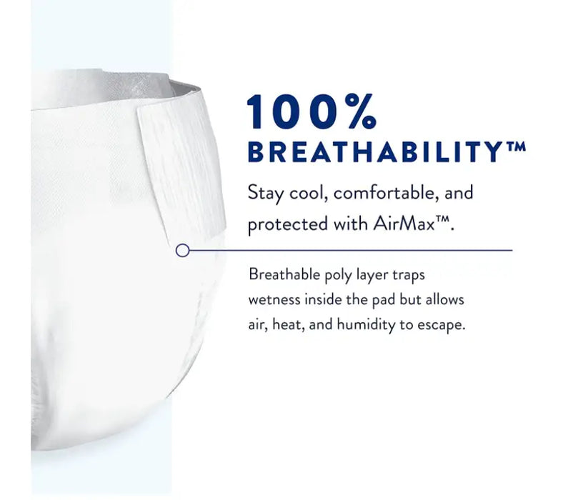 Microclimate Care™ has advanced features that reduce humidity and moisture to support healthy skin. 100% Breathability allows air to circulate around the entire brief while heat and humidity escape.MaxSorb™ Gel Technology and a fast-absorbing thin core rapidly lock away moisture and odor.