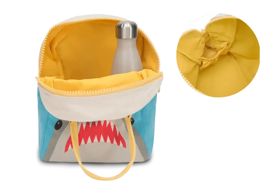 Fluf Zipper Lunch Bag - SHARK - 100% certified organic cotton