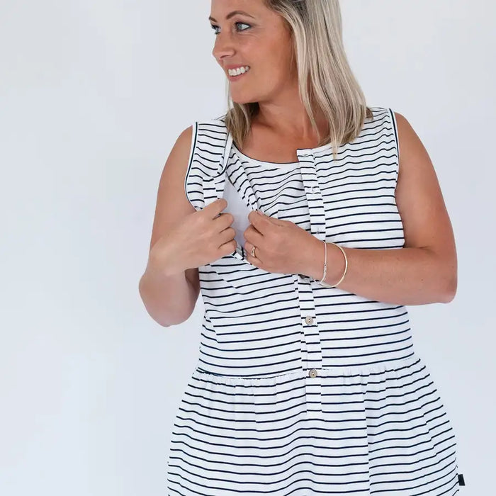 Milkbar Breastfeeding Billie Dress | White/Navy Stripe *CLEARANCE*