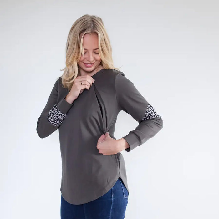 Their practical yet chic look with discreet breastfeeding access. These sweaters are a feminine statement piece with that pop of leopard detailing that will last from pregnancy, breastfeeding and beyond.