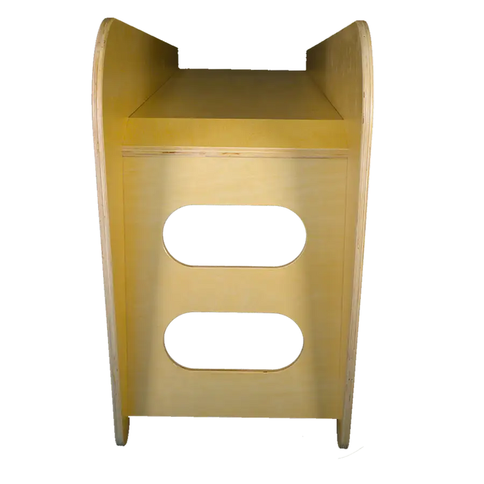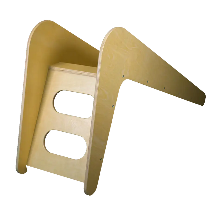 The wooden slide is designed in a minimalist style and will perfectly fit in your home interior.