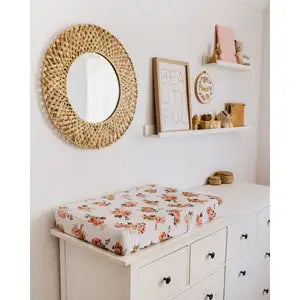 Our ROSEBUD Fitted Bassinet Sheet can also be used as a Change Pad Cover and is made from snuggly soft stretch cotton jersey. Comes with a matching drawstring bag which can be used for other multi-purposes.